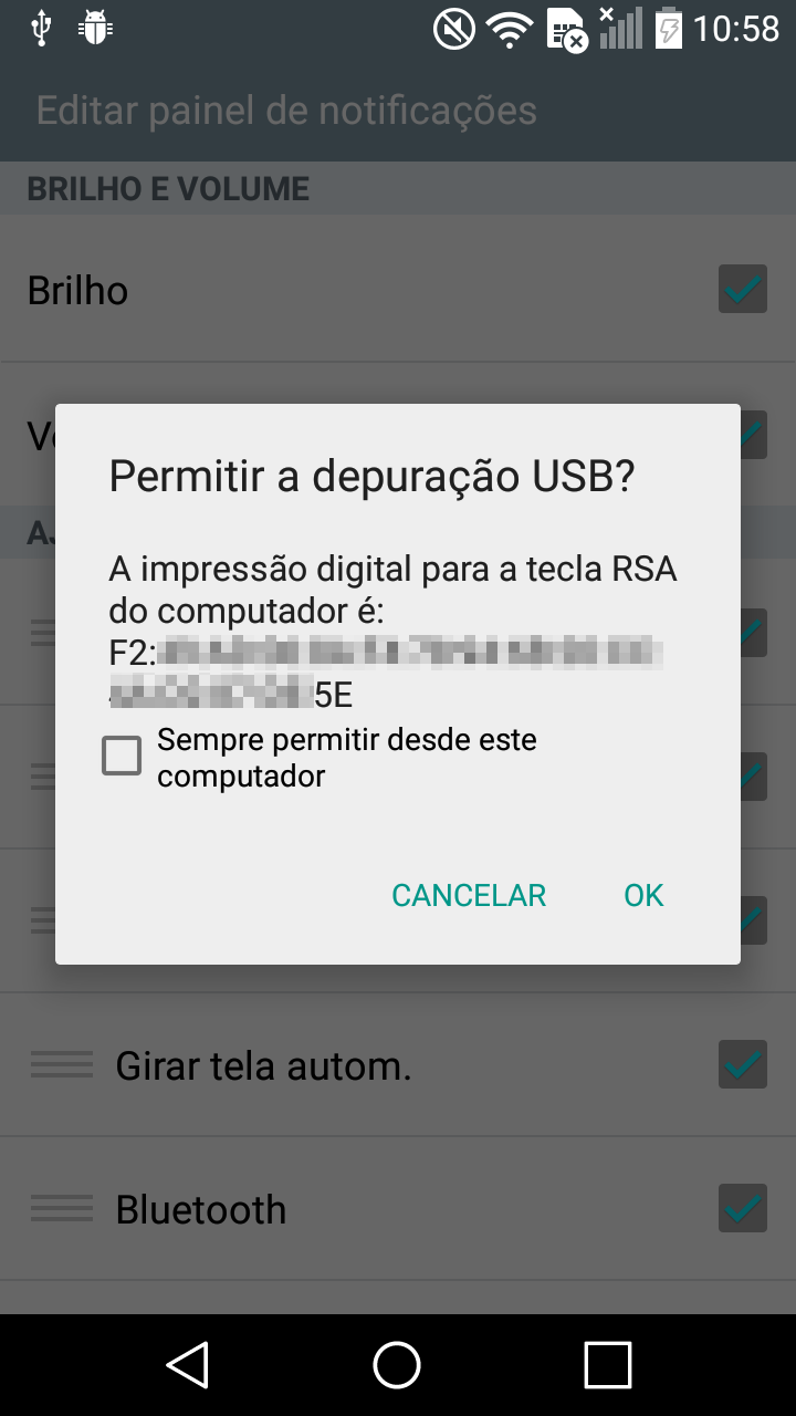 Ah! Não esquece de desativar a Depuração USB depois que você fizer todo o processo.